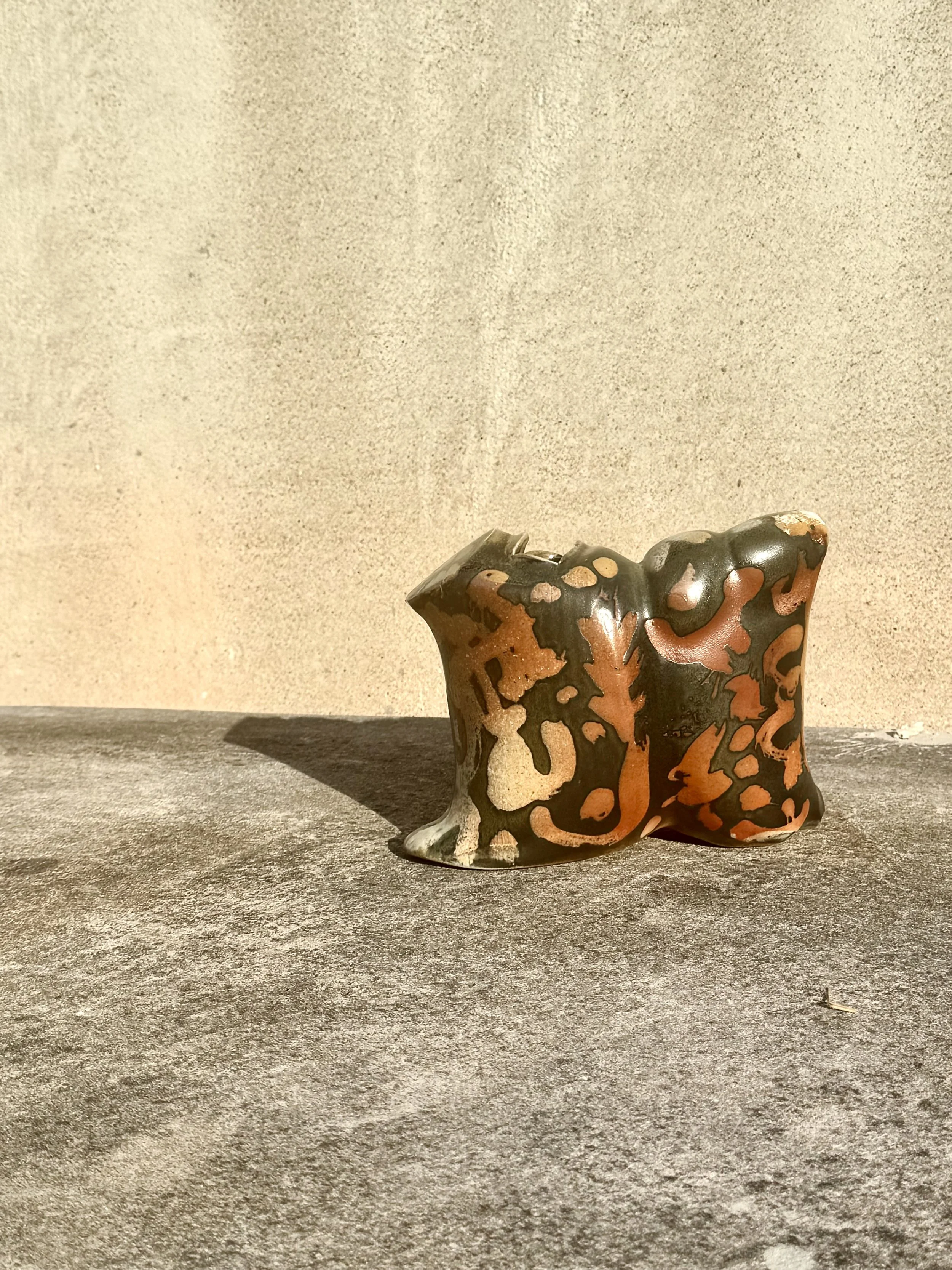 That choice comes out of lived experience, not theory. I have seen that staying intact is not always the same as staying true. I have also seen that damage changes posture, rhythm, and capacity, but does not erase a body. In the studio, a vessel can cave in, tilt, split, or lose some of its original function and still hold volume. It can still keep an interior. That matters to me. I think a lot about containment, but not in a neat functional sense. I mean the ability to hold memory, pressure, grief, contact, and time without denying what they did to the structure.